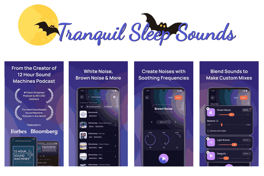 Tranquil Sleep Sounds lets you create personalized soundscapes using white, brown, green, and pink noise, along with natural sounds like rain, wind, and forest ambiance. Mix and match audio tracks, apply binaural beats, and block external noise to support deep sleep, focus, relaxation, or soothing babies.