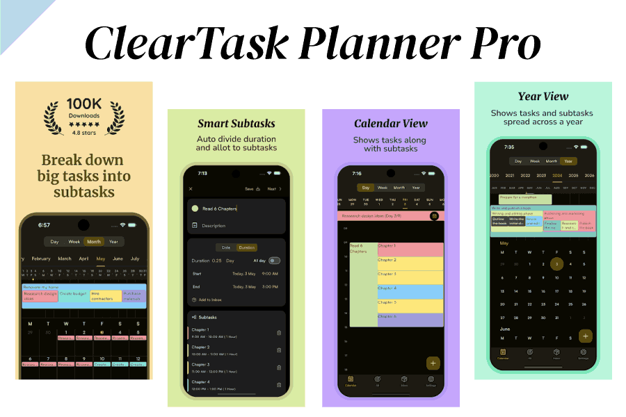 ClearTask Planner Pro helps you break down complex projects with multi-level subtasks and an organized task hierarchy. View your plans through daily, monthly, or yearly perspectives and keep track of long-term goals with ease. Capture ideas on the go using the inbox feature and stay updated with customizable task alerts.